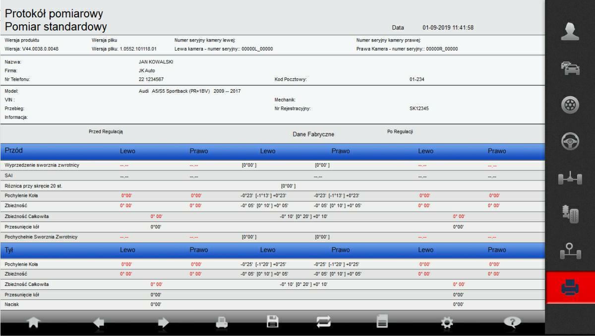 Tak, wszystkie kąty zawieszenia mierzone są w czasie rzeczywistym, co znacząco skraca czas pracy.