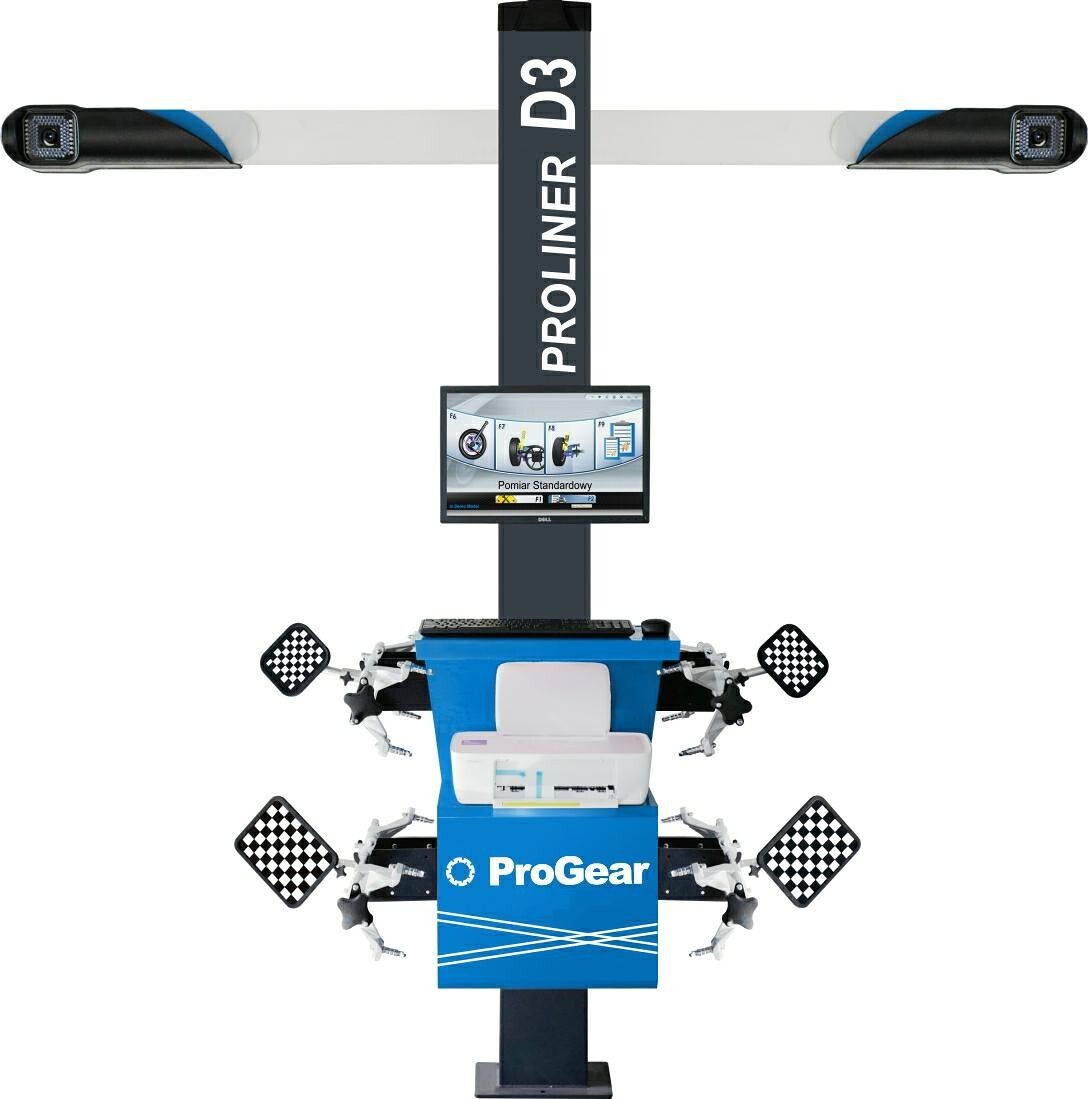 Geometria kół 3D ProGear PROLINER D3 to nowoczesny i niezawodny system do pomiaru oraz regulacji geometrii zawieszenia. Urządzenie wykorzystuje technologię analizy obrazu 3D, zapewniając wysoką dokładność, stabilność i powtarzalność wyników pomiarowych.