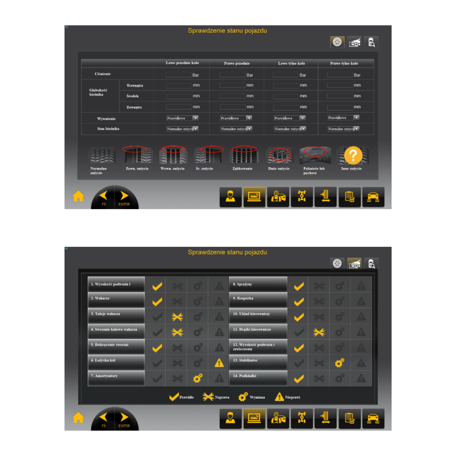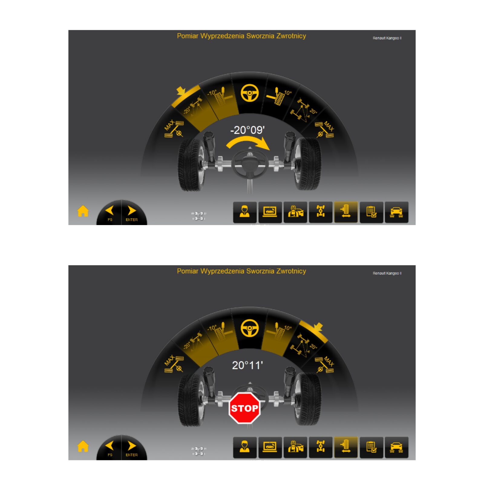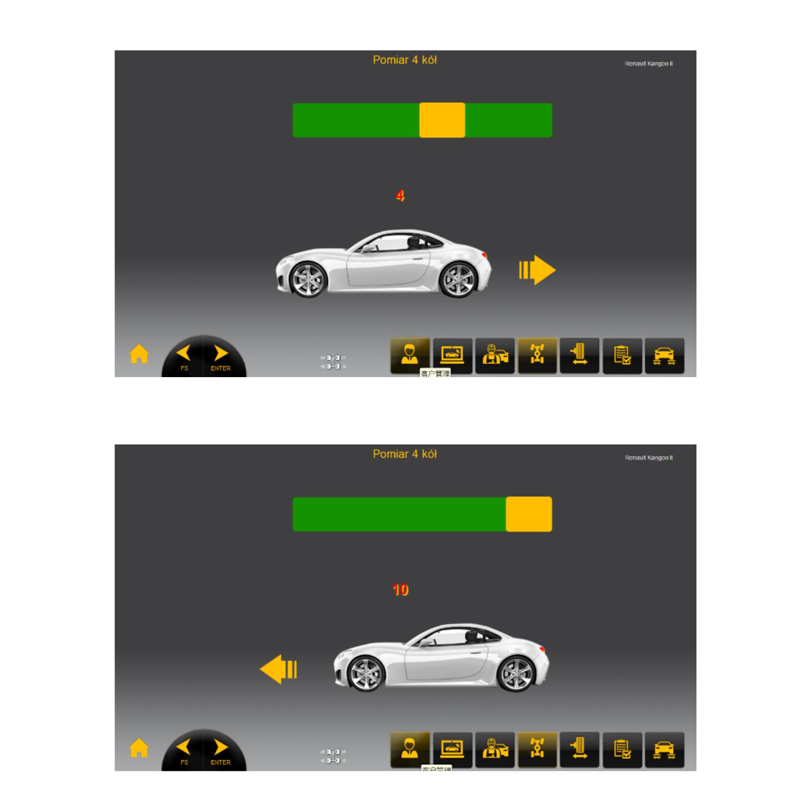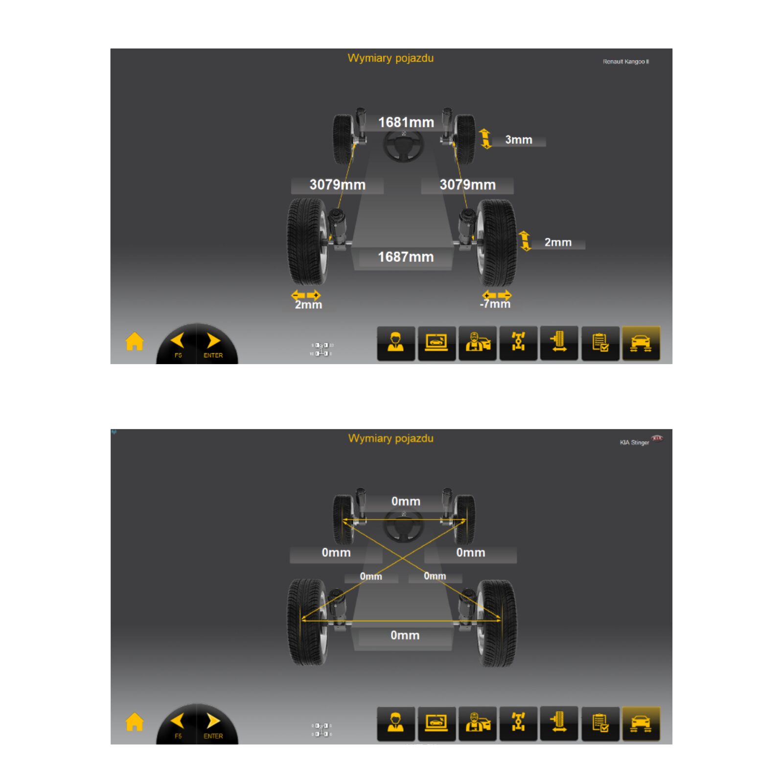 - kontrola przesunięcia osi (długości i przekątne pojazdu)