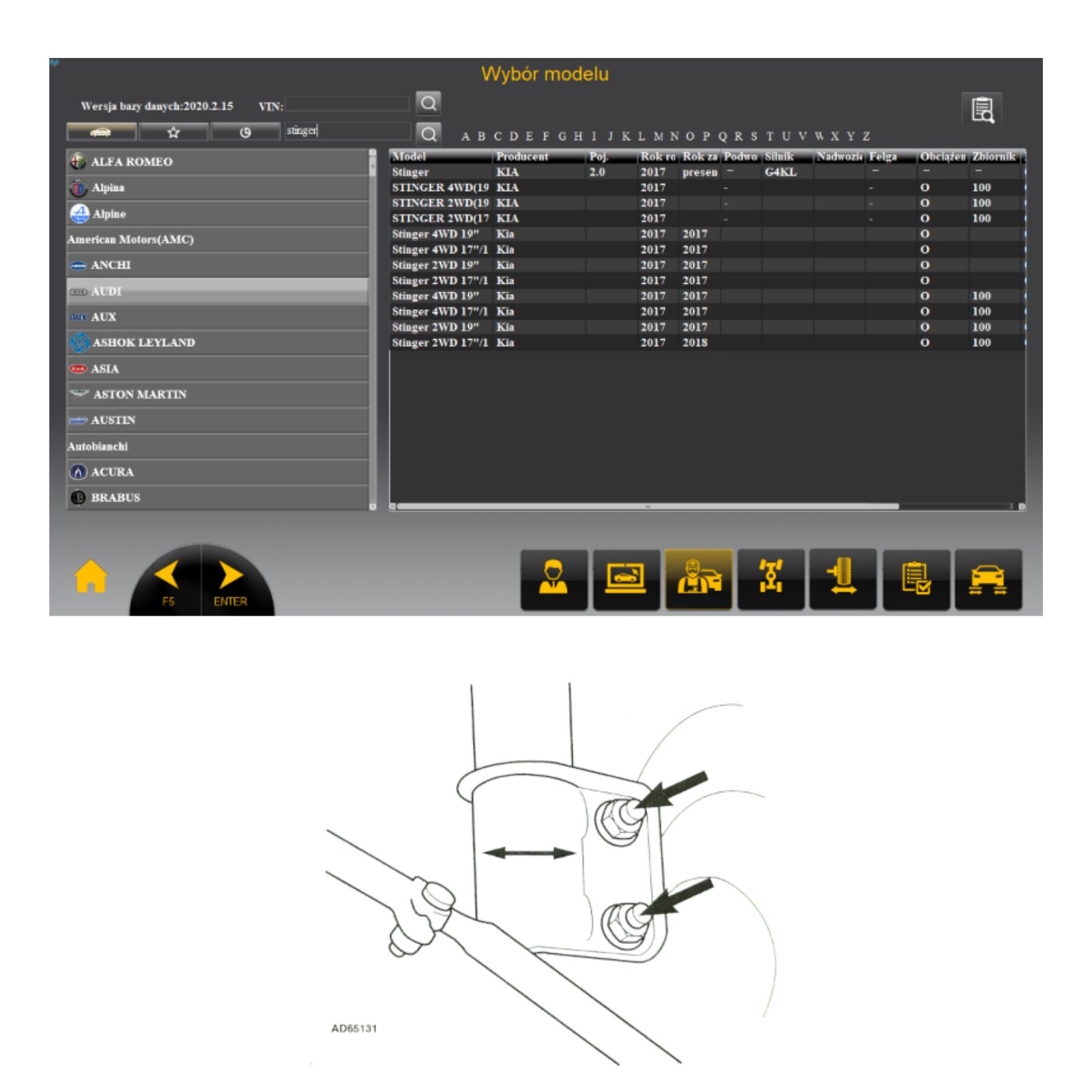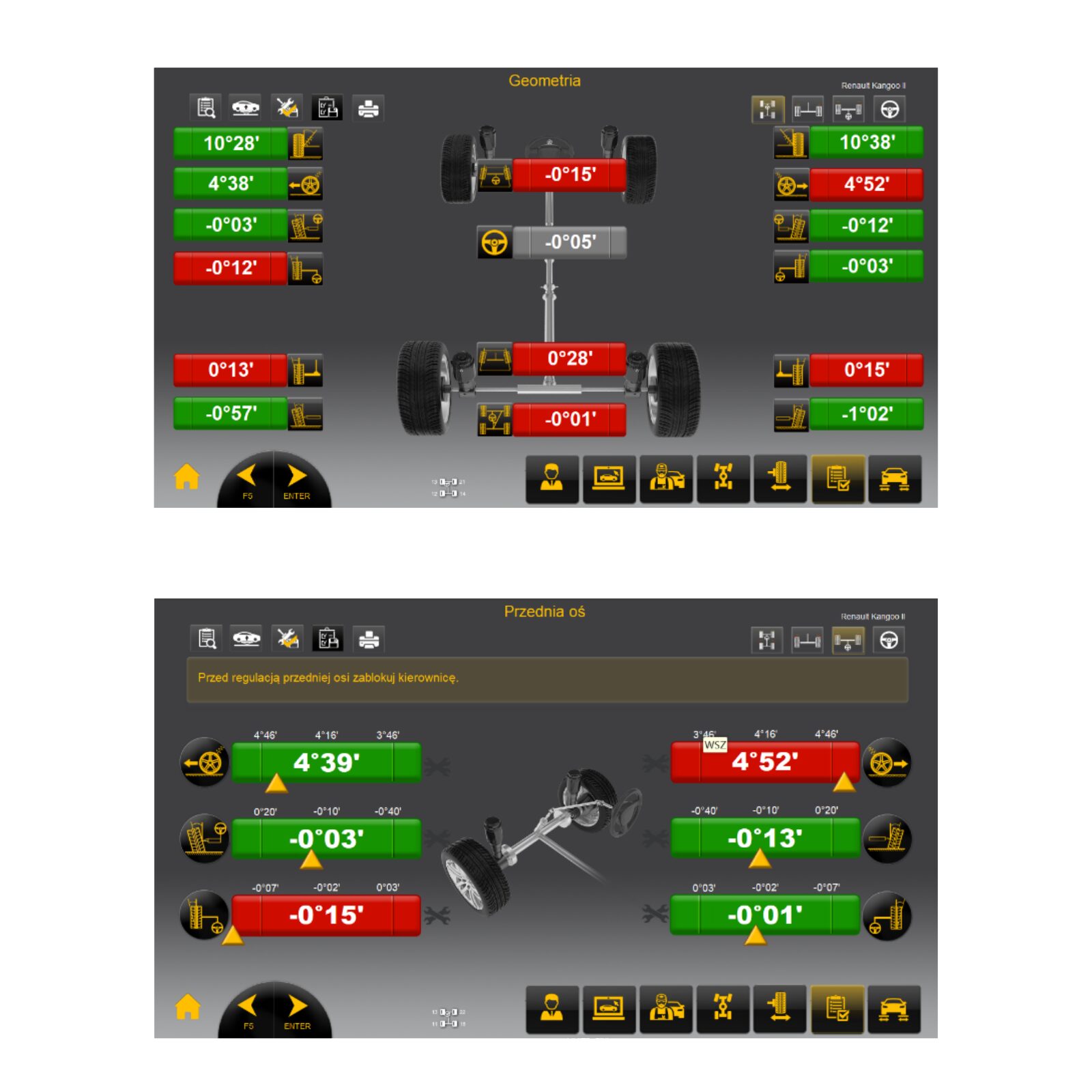 - regulacja geometrii przy zdjętym kole (opcjonalnie)