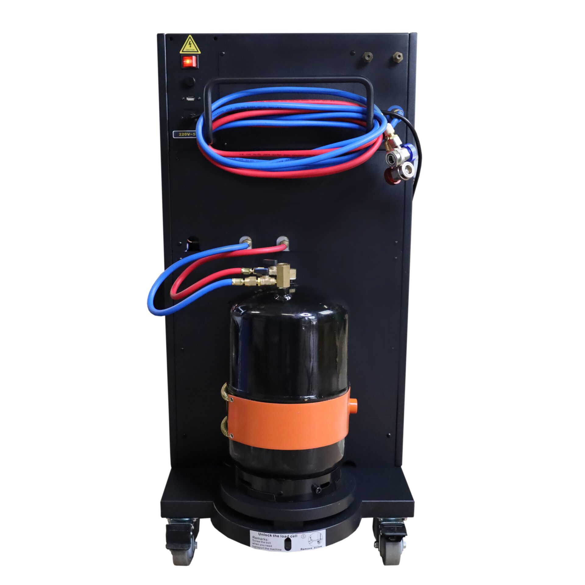 - Stacja obsługuje czynniki chłodzące R134a lub R1234yf, z możliwością wyboru przez klienta w momencie zakupu – należy jednak zaznaczyć, że urządzenie nie obsługuje obu czynników jednocześnie.