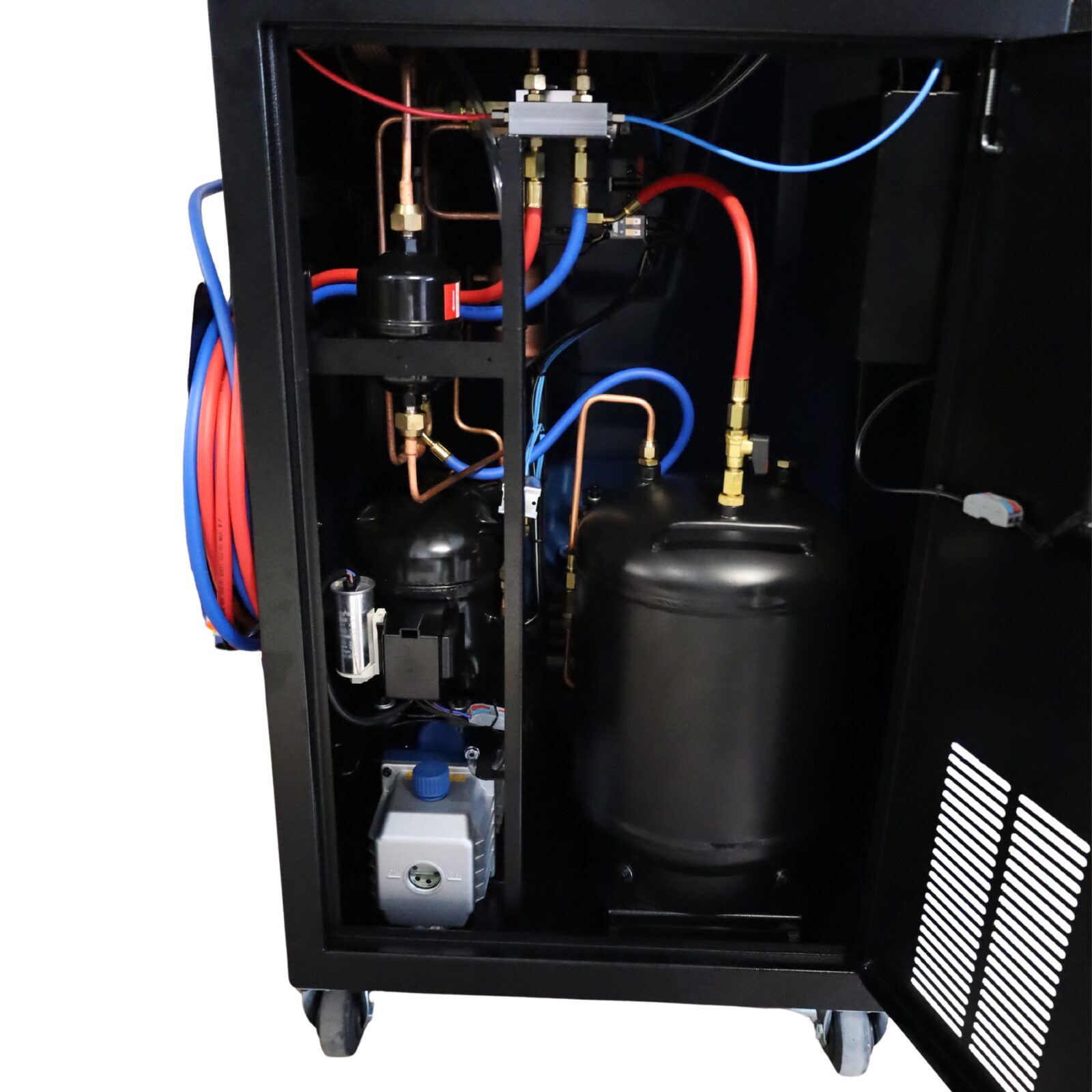 Urządzenie umożliwia wykonanie pełnego podstawowego serwisu klimatyzacji samochodowej, obejmującego: