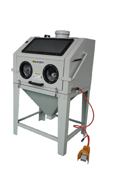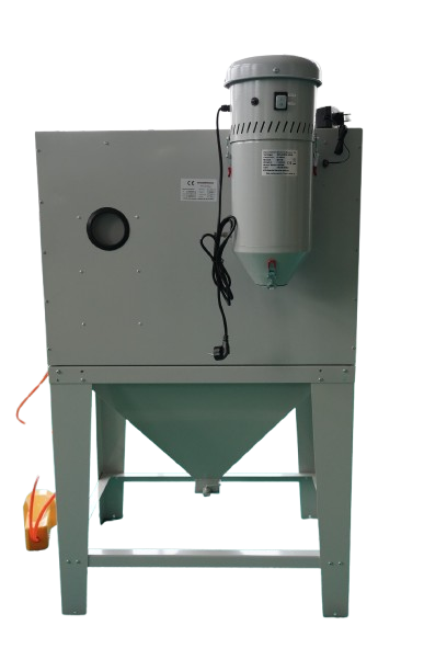 Piaskarka jest w pełni kompletna, wyposażona została w sprawdzony system sterowania, solidną i dużą kabinę z frontowo otwieranymi drzwiami, pistolet do piaskowania, rękawice robocze, oświetlenie przestrzeni roboczej, duże okno, odpylacz i filtr cyklonowy.