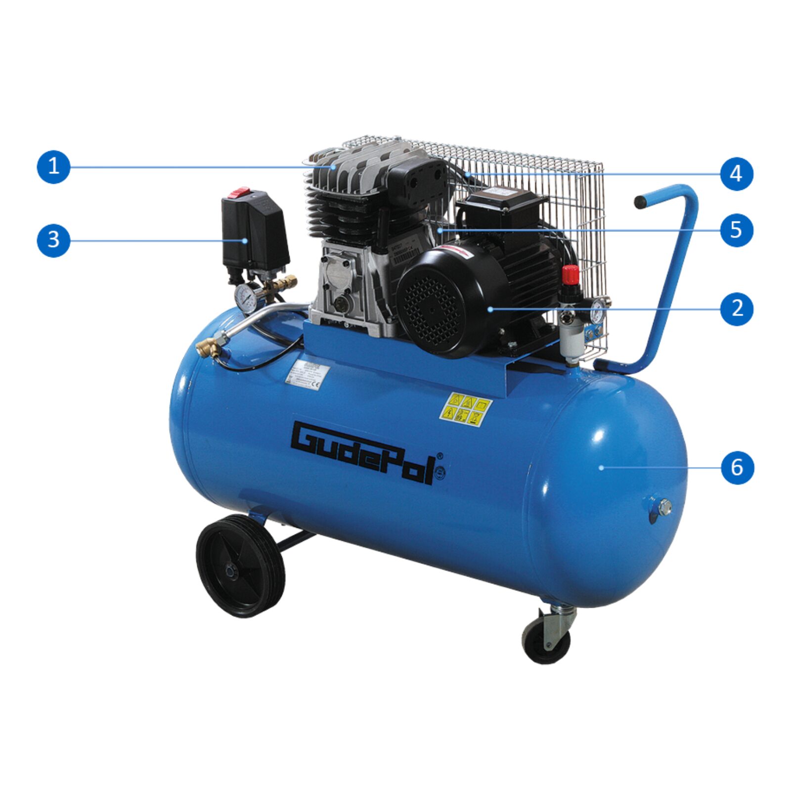 GUDEPOL to polski lider pneumatyki działający nieprzerwanie od 1990 roku. Seria GD to sprawdzone rozwiązanie łączące nowoczesny system pompujący z solidnym zbiornikiem malowanym proszkowo. Sprężarka została w całości zaprojektowana i zmontowana w Polsce, co gwarantuje najwyższą jakość wykonania oraz pełną kontrolę na każdym etapie produkcji.
