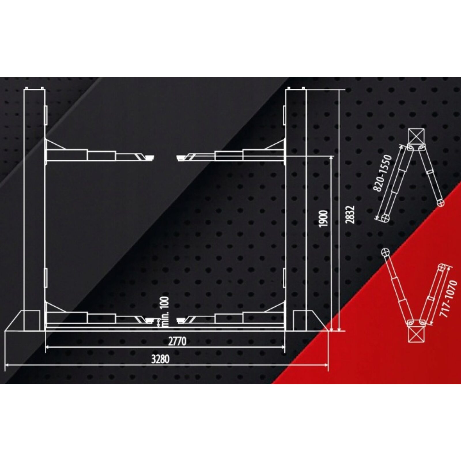 Profesjonalny podnośnik samochodowy o udźwigu 4200 kg, zaprojektowany dla warsztatów mechanicznych i serwisów ogumienia. Wyposażony w system mechanicznej synchronizacji kolumn, który zapewnia stabilne i równe podnoszenie pojazdów osobowych oraz typu SUV.
