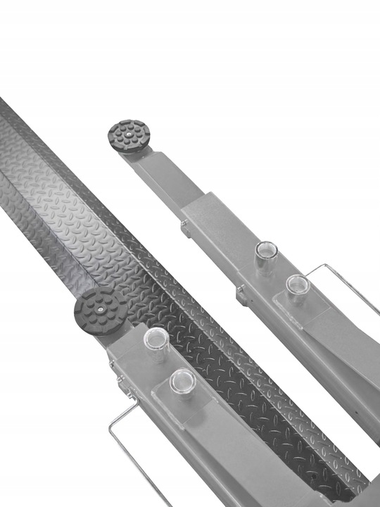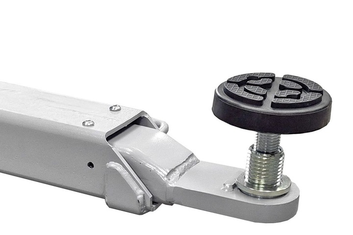 Dodatkowo asymetryczna konstrukcja łap ułatwia wsiadanie i wysiadanie z auta podczas pracy. Zestaw obejmuje ramiona 2-częściowe (przód) oraz 3-częściowe (tył), dlatego bez problemu dopasujesz punkty podparcia do różnych rozstawów osi. Regulowane adaptery wysokości pozwalają precyzyjnie ustawić podparcie względem podwozia.