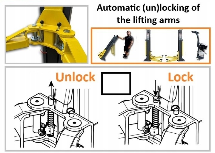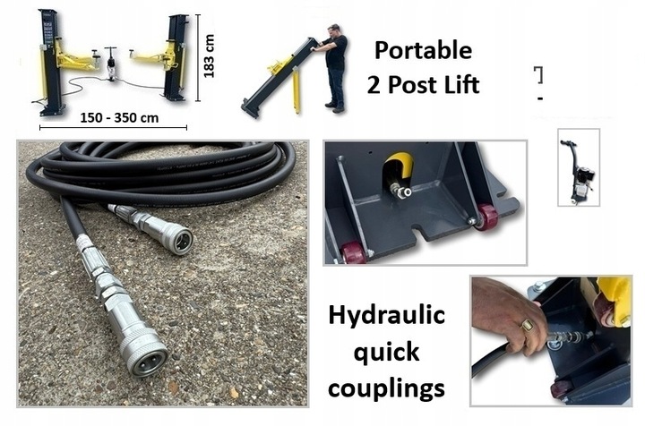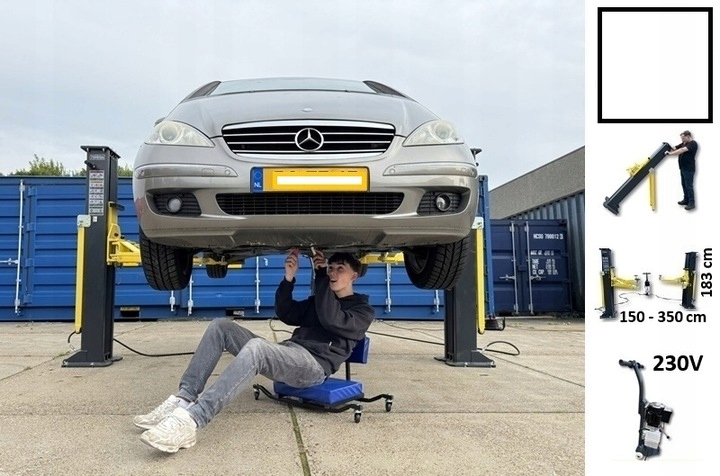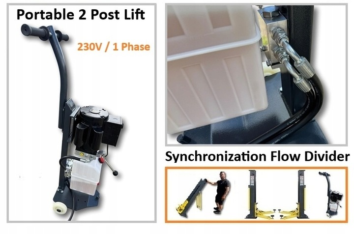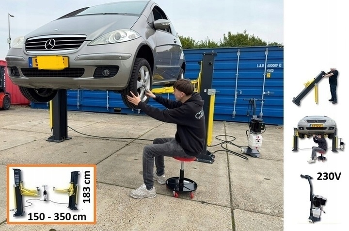 Mobilna konstrukcja umożliwia szybki montaż i demontaż, co daje dużą elastyczność użytkowania w różnych lokalizacjach. Solidna, wzmocniona rama oraz mechaniczny system synchronizacji na poziomie posadzki gwarantują równomierne i stabilne podnoszenie pojazdu, nawet przy intensywnej eksploatacji.
