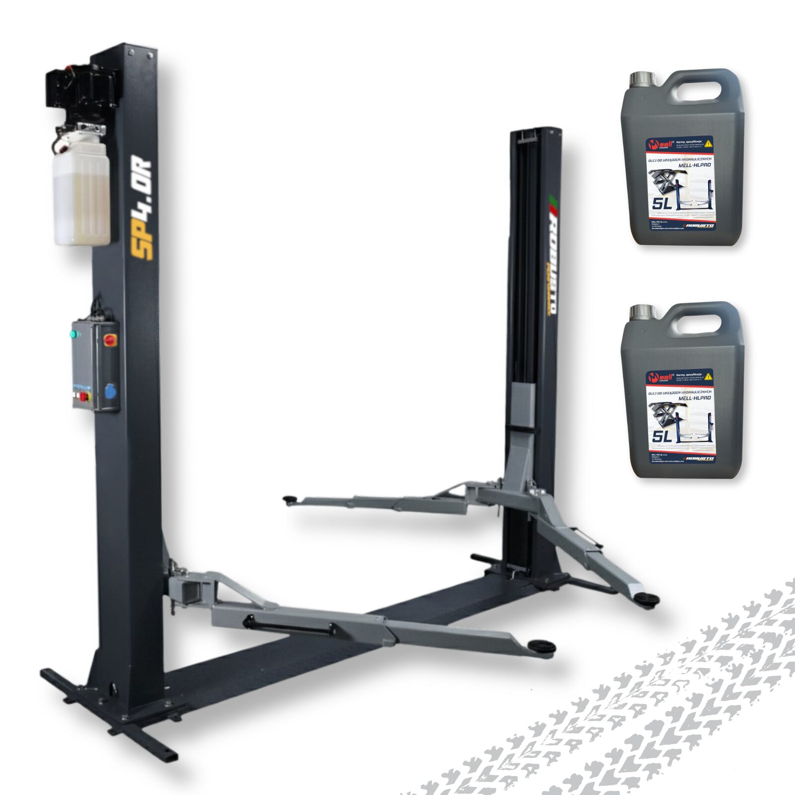 - W zestawie kotwy montażowe i olej do podnośników
