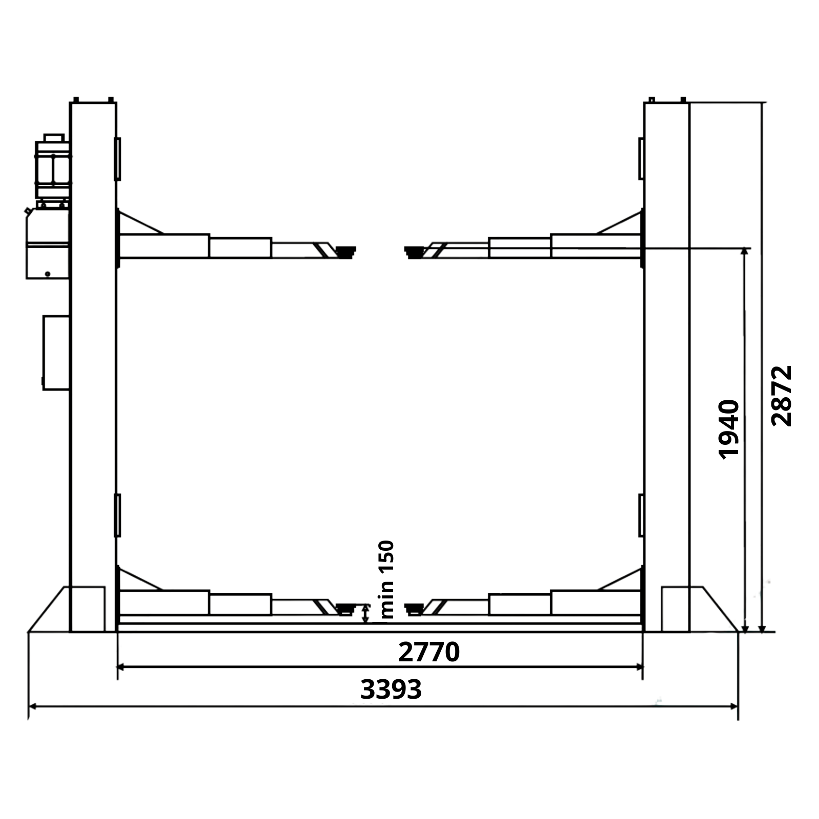 - Prześwit pomiędzy kolumnami 2820 mm