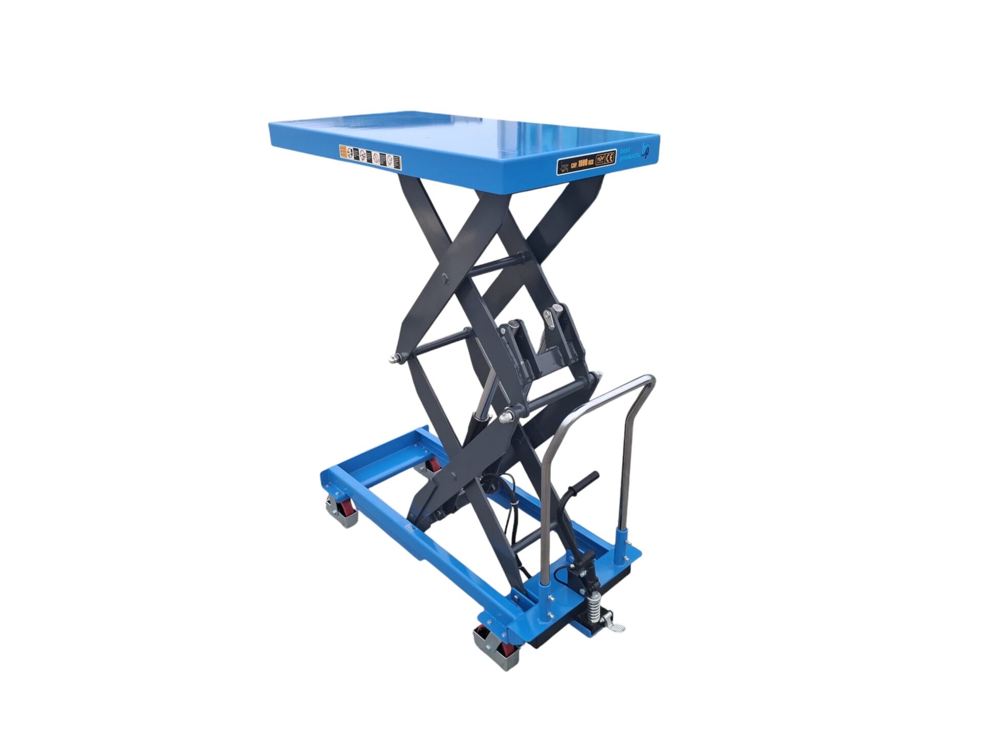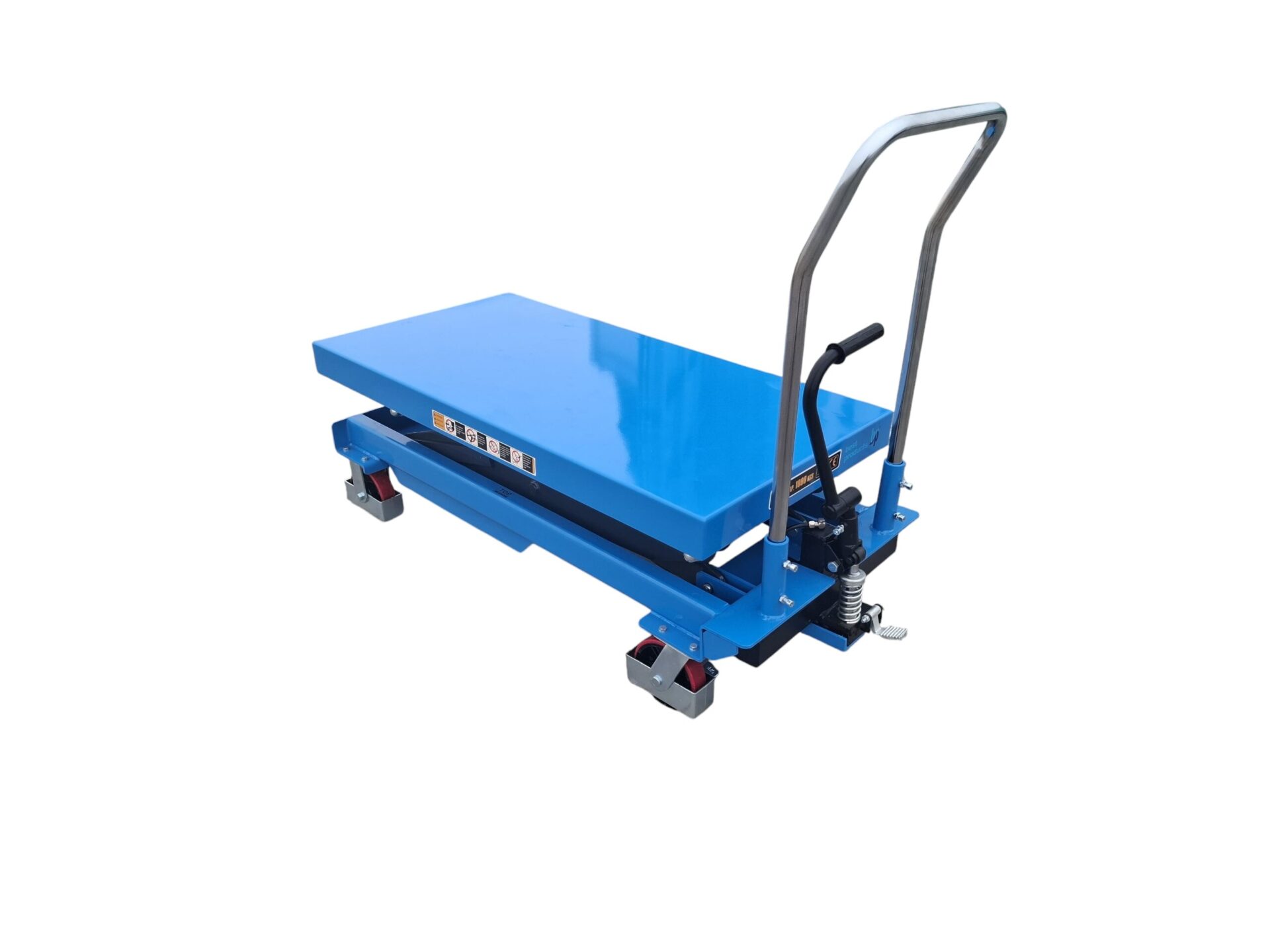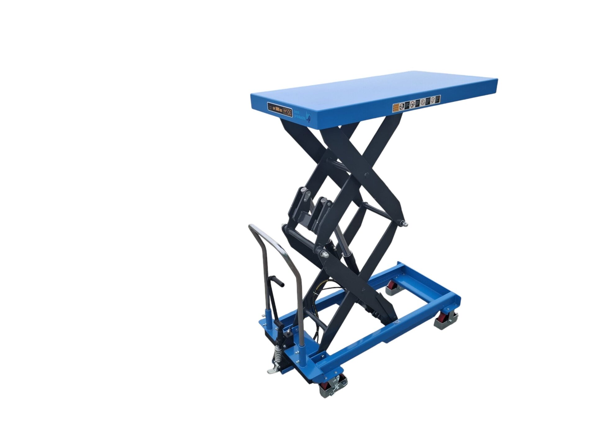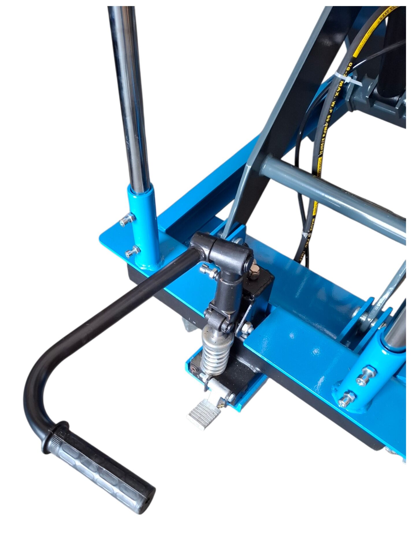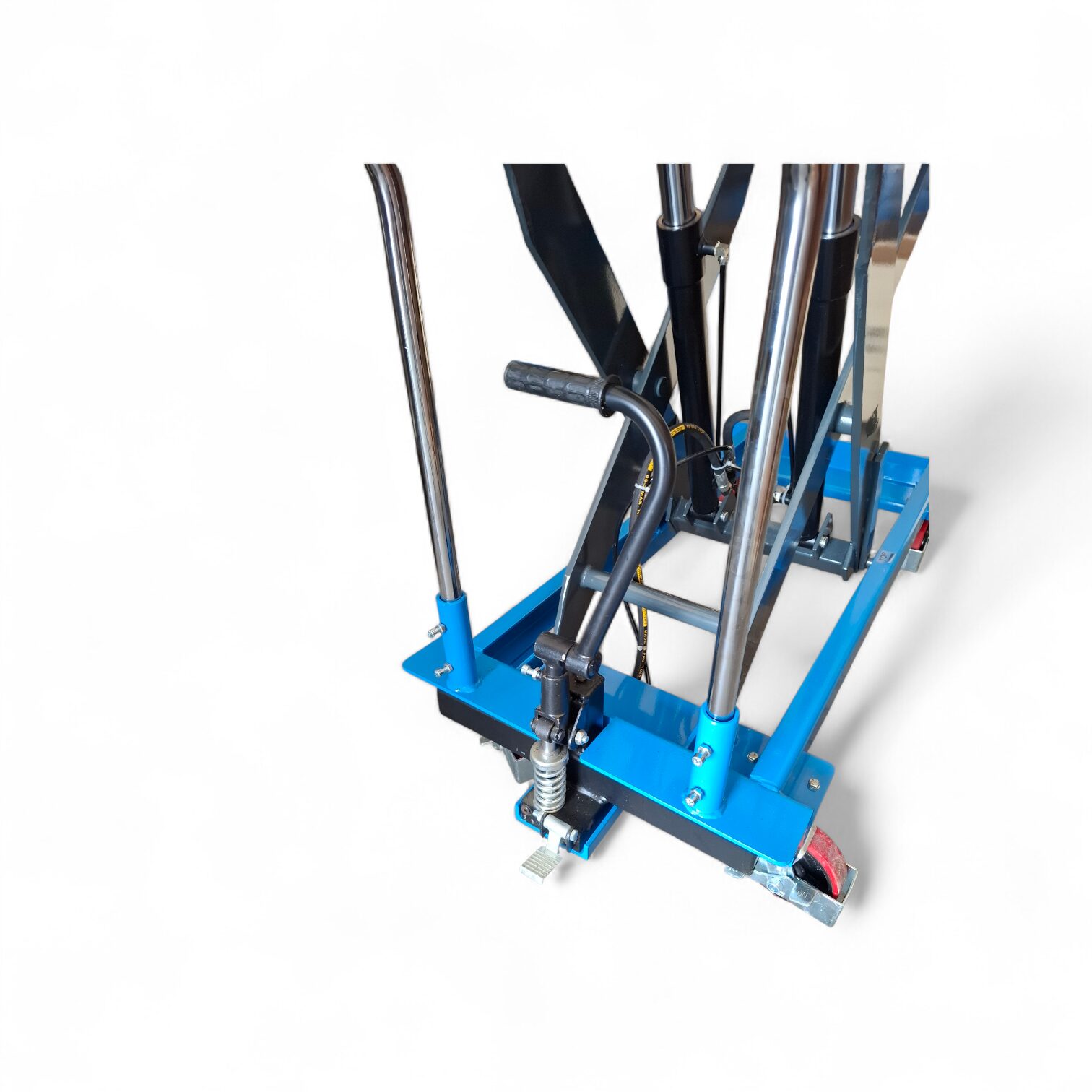 Co więcej, hydrauliczny napęd z pompą nożną pozwala operatorowi pracować szybko i wygodnie, a jednocześnie zachować pełną kontrolę nad procesem podnoszenia. Specjalnie zaprojektowany zawór spustowy umożliwia płynne i precyzyjne opuszczanie stołu pod obciążeniem, w rezultacie zwiększając bezpieczeństwo pracy.