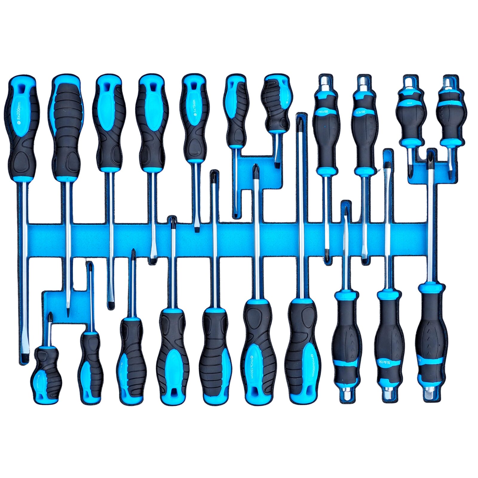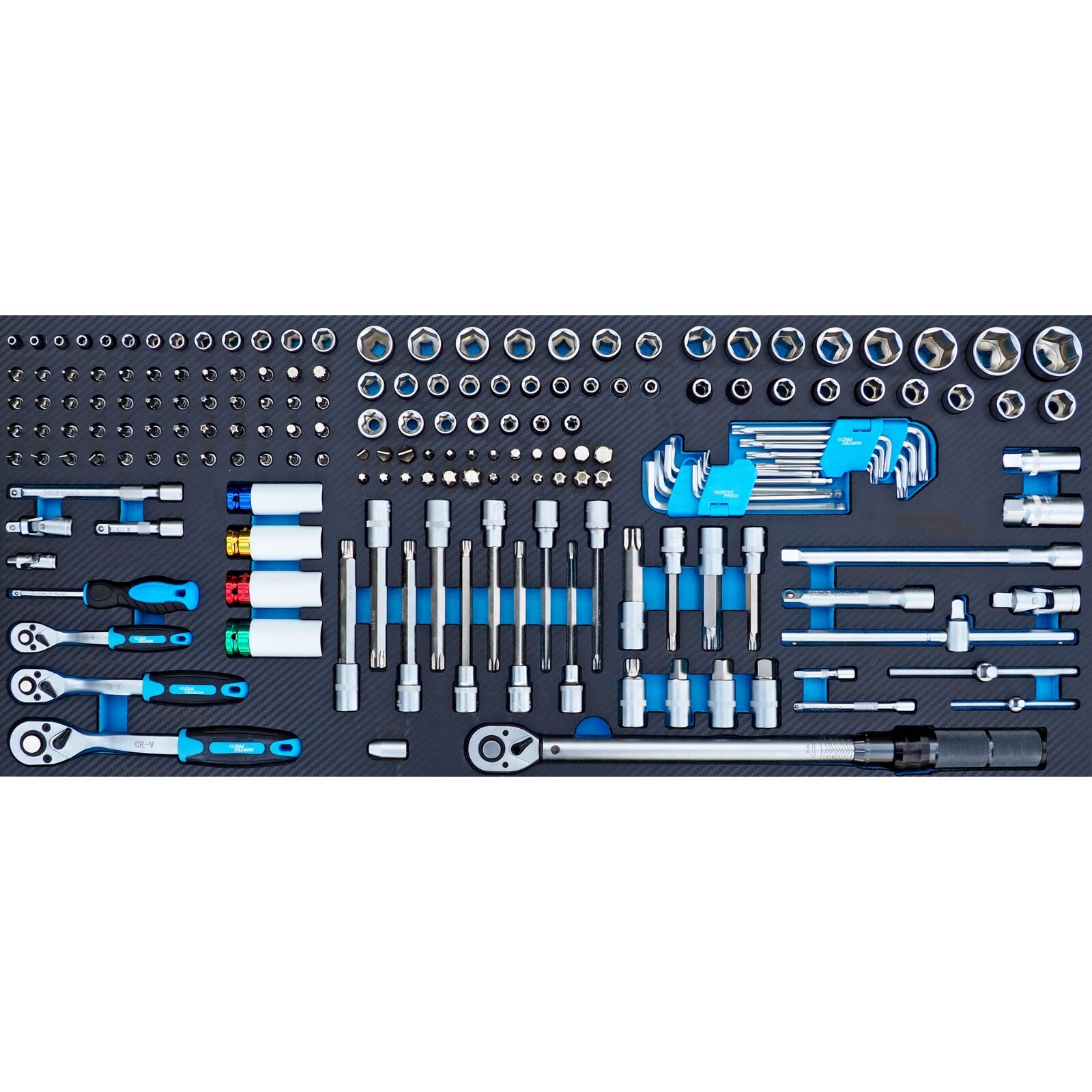Zestaw zawiera szeroki wachlarz narzędzi niezbędnych do prac serwisowych i montażowych. Wszystkie elementy są rozmieszczone w profilowanych wkładkach z pianki, co gwarantuje porządek i błyskawiczną kontrolę kompletności.