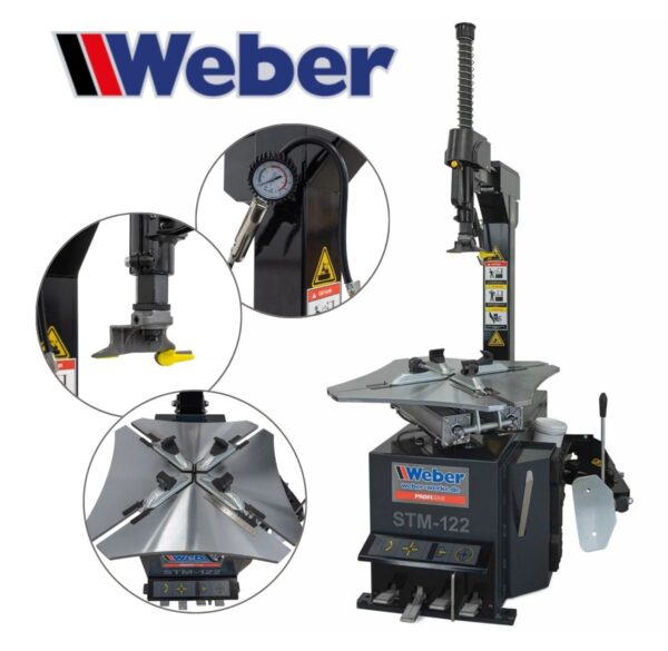 Weber Profi Series STM-122 to profesjonalna montażownica do opon, która spełni oczekiwania nawet najbardziej wymagających użytkowników, ponieważ łączy trwałość, wydajność i bezpieczeństwo pracy.