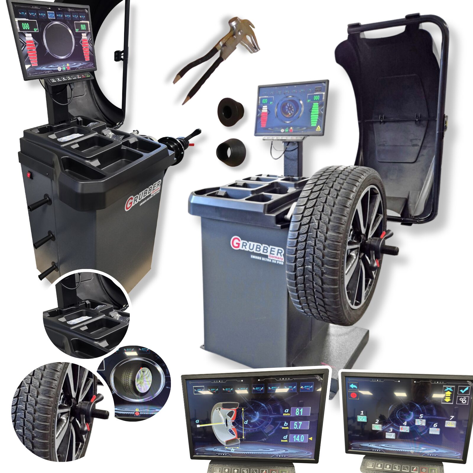 GRUBBER EM905 PRO to profesjonalna, automatyczna wyważarka do kół przeznaczona dla warsztatów i serwisów opon. Urządzenie wykorzystuje technologię FULL 3D oraz system Laser Point, zapewniając wysoką precyzję wyważania i szybki czas pracy. Intuicyjna obsługa, automatyczne pomiary oraz zaawansowane funkcje wspomagające sprawiają, że model ten znacząco usprawnia codzienną pracę i podnosi standard usług.