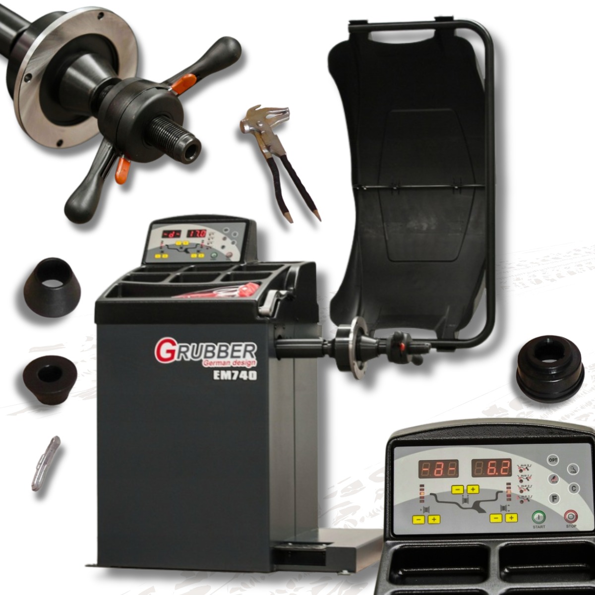 • Wyważarka Grubber – precyzyjne urządzenie do wyważania kół, zapewniające dokładność i wygodę obsługi.
