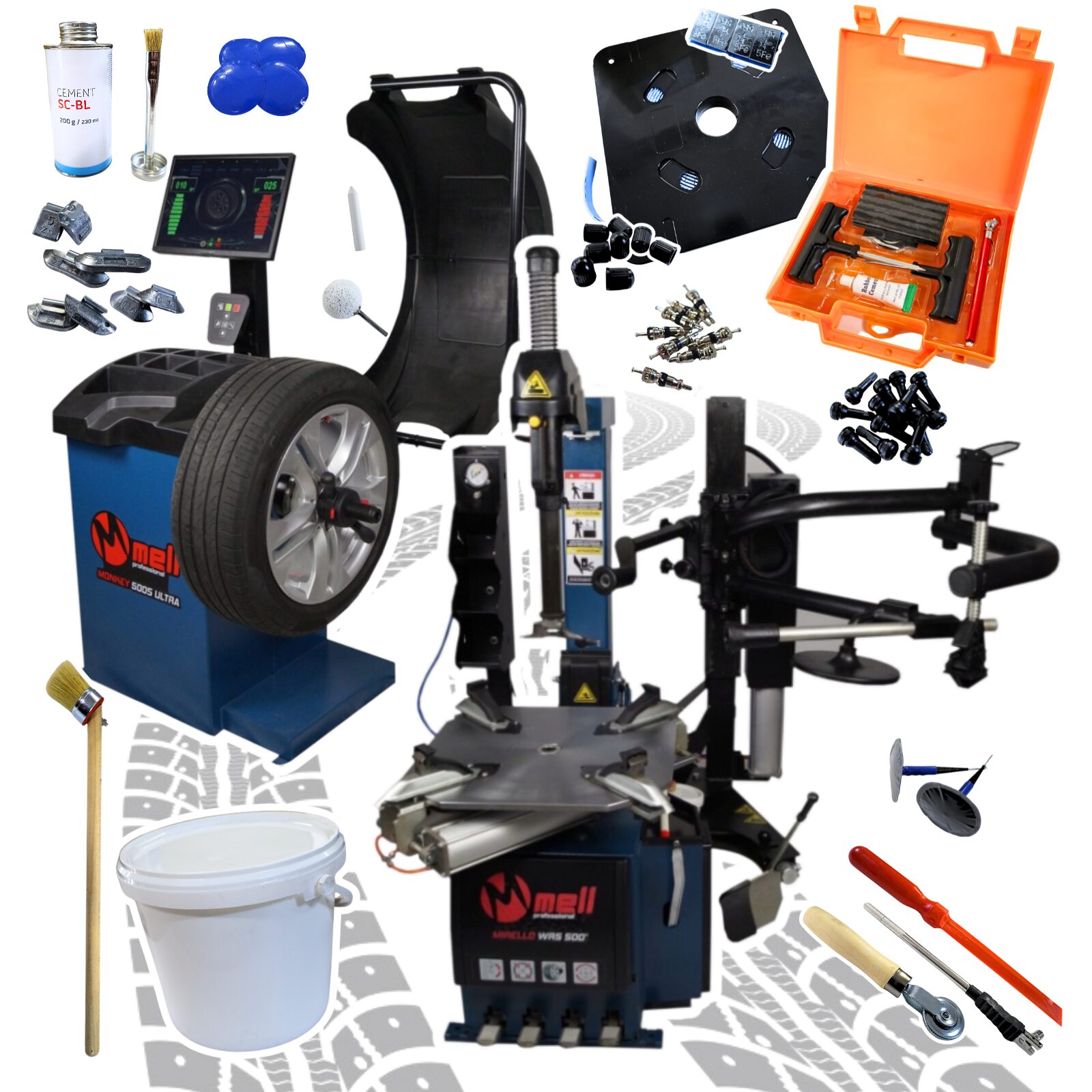 Zestaw Montażownica Automatyczna MELL PRO WRS 500+ 2-biegowa 26″ + ramię Run Flat + Wyważarka do kół automatyczna z laserem i monitorem MELL PRO